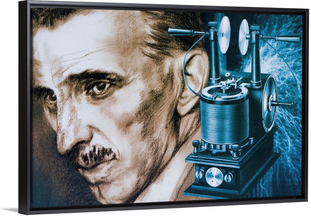 <p>Nikola Tesla shown with an early tesla coil generating a strong electric field. Tesla is known for his revolutionary contribution to the field of electromagnetism and his many electrical inventions.</p>
