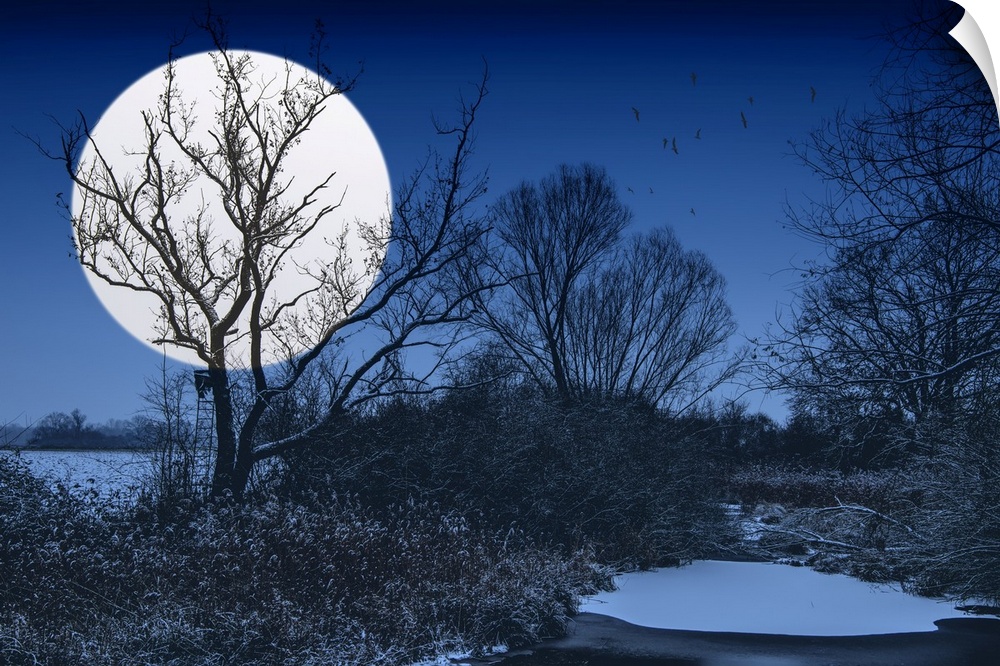 <p>Night landscape with a big white moon</p>