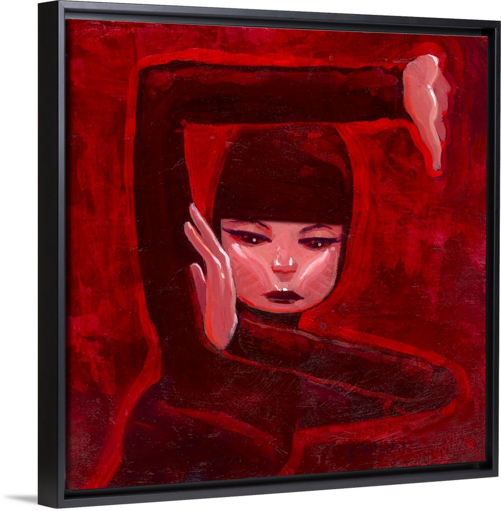 Art College Dorm Décor Contemporary Art Figurative Eyes on Walls Collection Aaron Jasinski Painting People Portraits Red Wall Art Scarlet