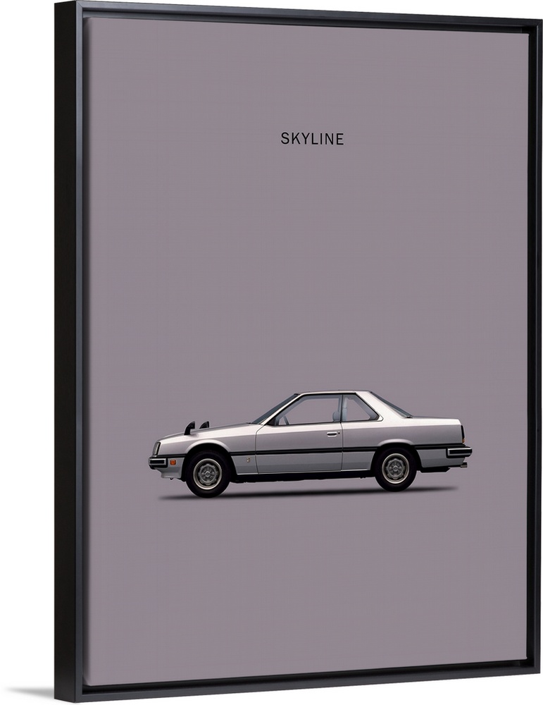 <p>Photograph of a silver Nissan Skyline 2000GT printed on a gray background</p>