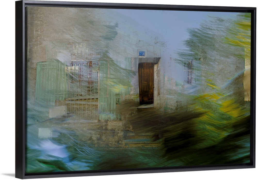 <p>Abstract photograph of a building facade with a wooden door and the number 72 written above it.</p>