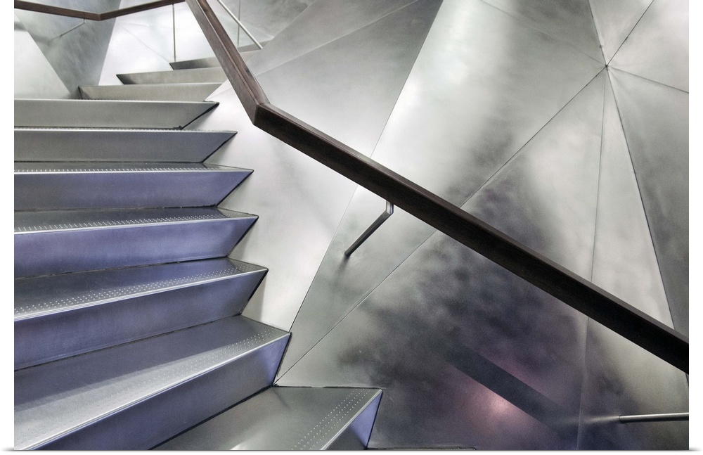 <p>Angular metal stairwell in the Caixa Forum, Madrid.</p>