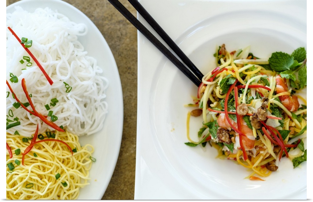 <p>Noodles and seafood with vegetables, Vietnamese food, Vietnam, Indochina, Southeast Asia, Asia</p>