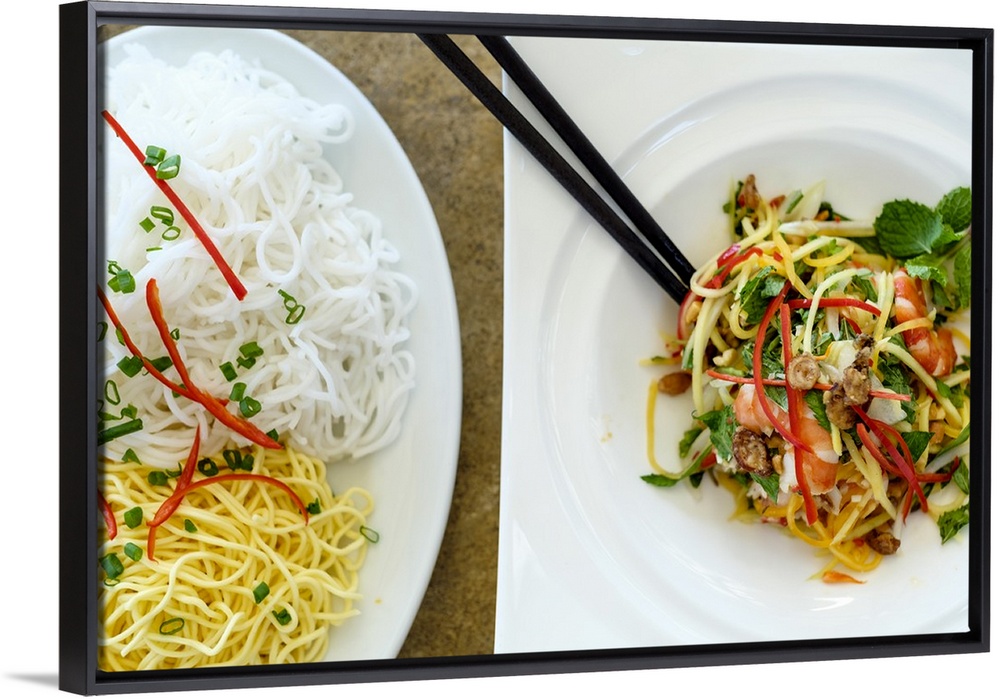<p>Noodles and seafood with vegetables, Vietnamese food, Vietnam, Indochina, Southeast Asia, Asia</p>