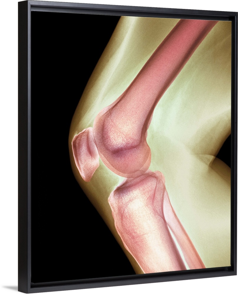 <p>Normal knee. Coloured X-ray of the knee of a 44 year old woman.</p>