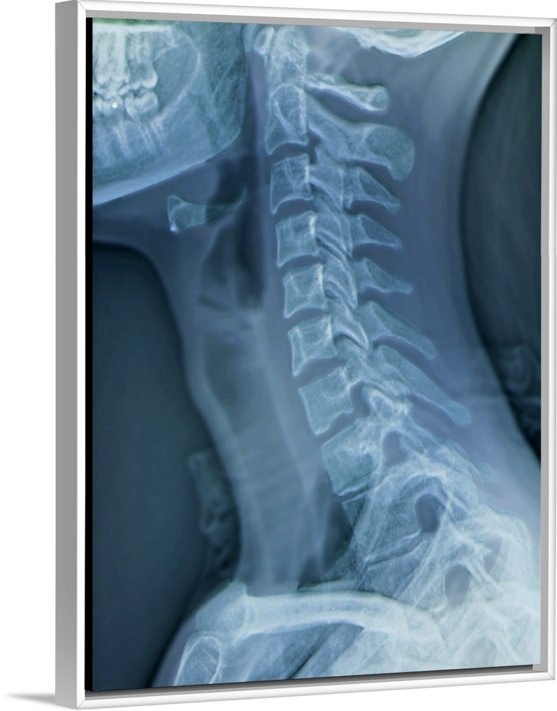 <p>Normal neck. Coloured X-ray of the cervical spine of a 27 year old.</p>