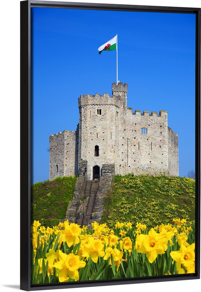 <p>Norman Keep and daffodils, Cardiff Castle, Cardiff, Wales</p>