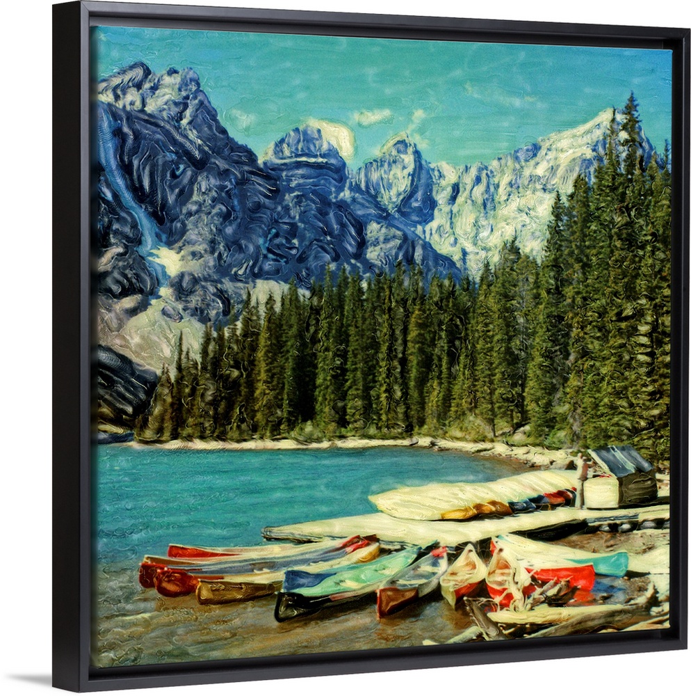 <p>North America, Canada, Banff National Park, Moraine Lake. Canoes along Moraine Lake. Polaroid SX70 Manipulation</p>