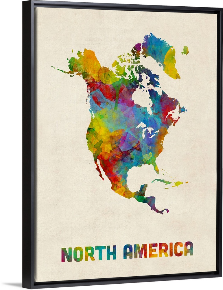 <p>A watercolor map of the continent of North America.</p>