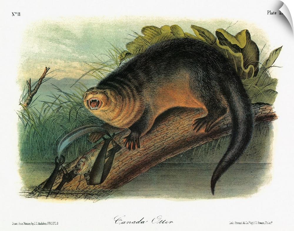 <p>North American, or Canadian, or northern, river otter (Lontra canadensis, formerly lutra canadensis). Lithograph, c1851, after a painting by John James Audubon for his 'Viviparous Quadrupeds of North America.'</p>
