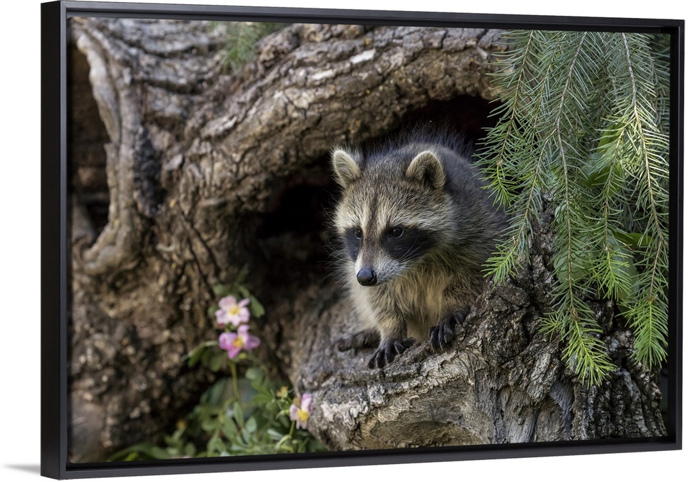 <p>North American raccoon, in hollow log, Procyon Lotor, Montana.</p>