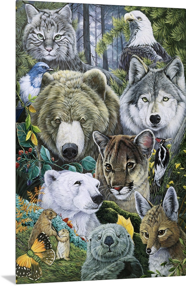 Art Decorative Art Jenny Newland Painting Wildlife Bear Wolf