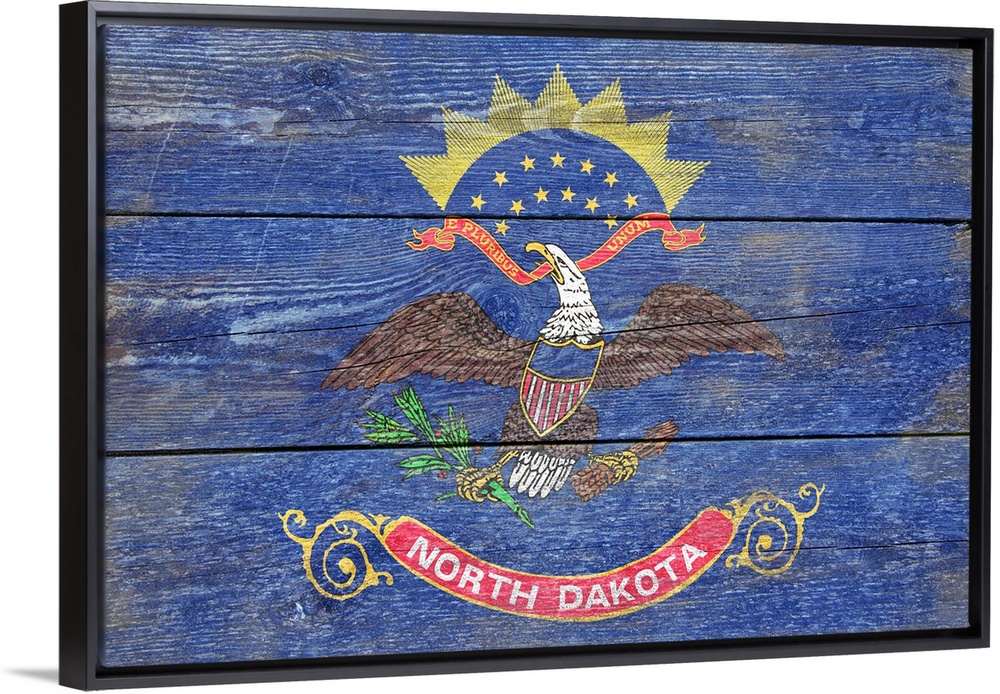 <p>The flag of North Dakota with a weathered wooden board effect.</p>