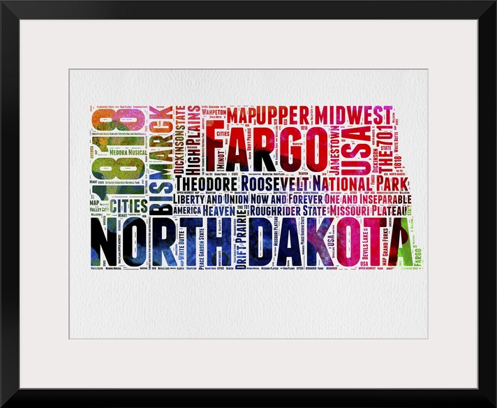 <p>Watercolor typography art map of the US state North Dakota.</p>