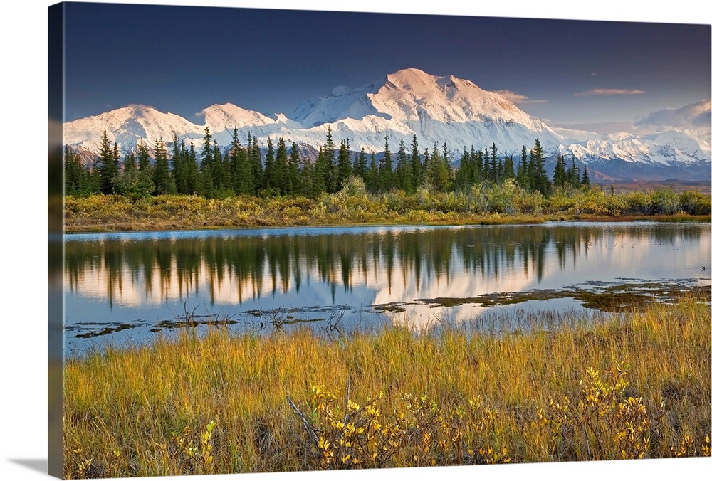 <p>The north face of Denali is reflected in a small tundra pond in Denali National Park, Alaska. Fall 2008.</p>
