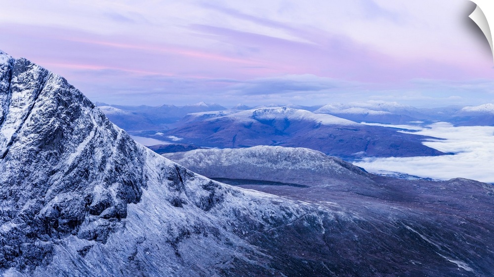 <p>North face of Ben Nevis, highest mountain in the British Isles, looking towards Fort William and Loch Eli, Highlands region, Scotland, United Kingdom</p>