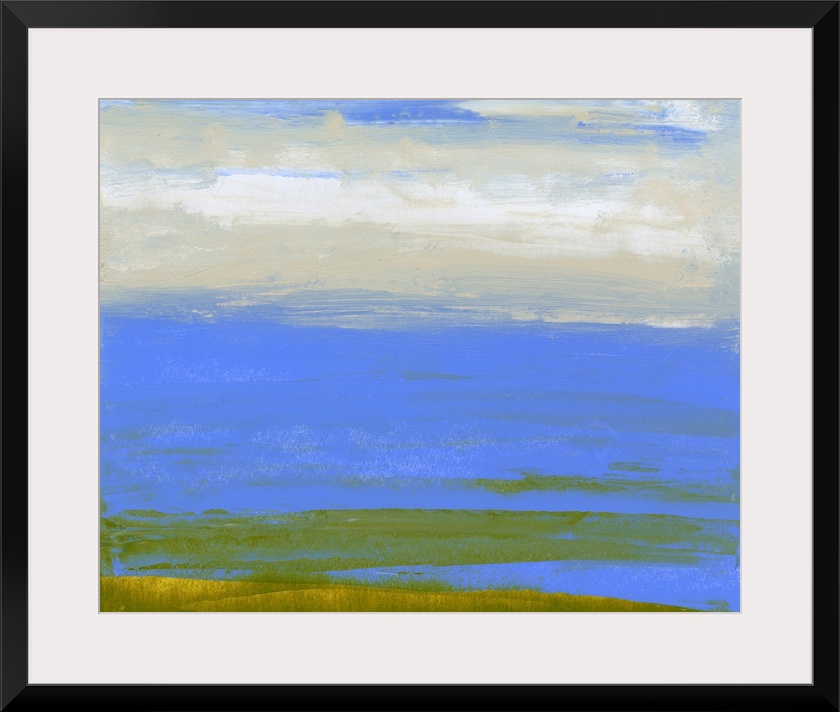 <p>Sharon Gordon creates abstract paintings inspired by the landscape surrounding her. She states, "I am and have always been completely captivated by places near or surrounded by water, especially the ocean. Experiencing a vista, particularly involving bodies of water, enhances the idea that an atmosphere can be an ever-changing, never-ending range of rhythm and volatility while remaining consistently whole." With her art, Gordon intends to evoke and "internal landscape," giving viewers the chance to transport themselves into a larger vista and recalling moments of time and space that they may have visited before.</p>
