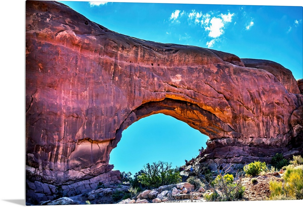<p>North window Arch Windows Section Arches National Park, Moab, Utah, USA. Red canyon walls and blue skies.</p>