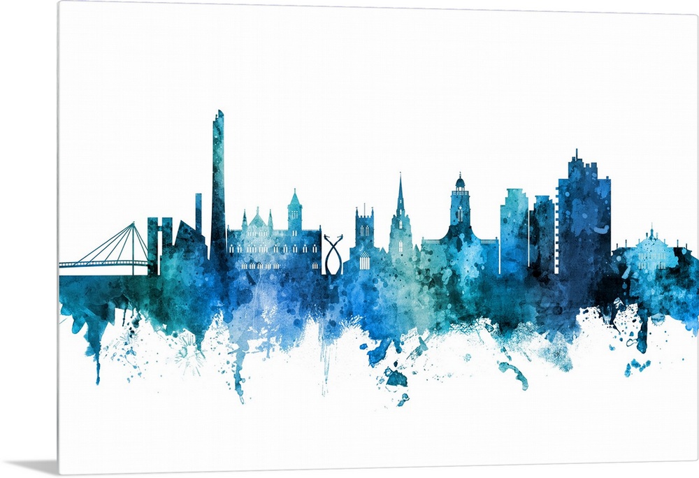 <p>Watercolor art print of the skyline of Northampton, England, United Kingdom.</p>