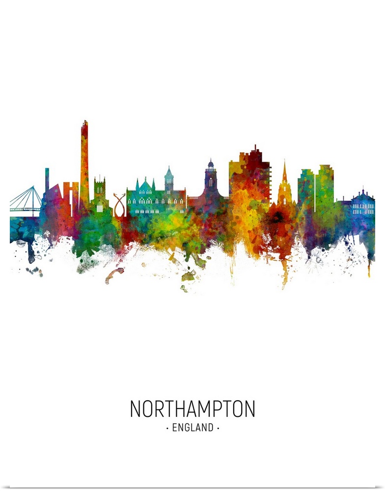 <p>Watercolor art print of the skyline of Northampton, England, United Kingdom</p>