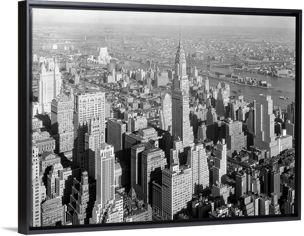 <p>Northeast view from NYC's Empire State Building includes the Chrysler Building. Jan. 19, 1932. In mid-distance is the Queensboro Bridge over the East River, and beyond that is the borough of Queens, and the Long Island Sound. Photo by Samuel H. Gottscho.</p>