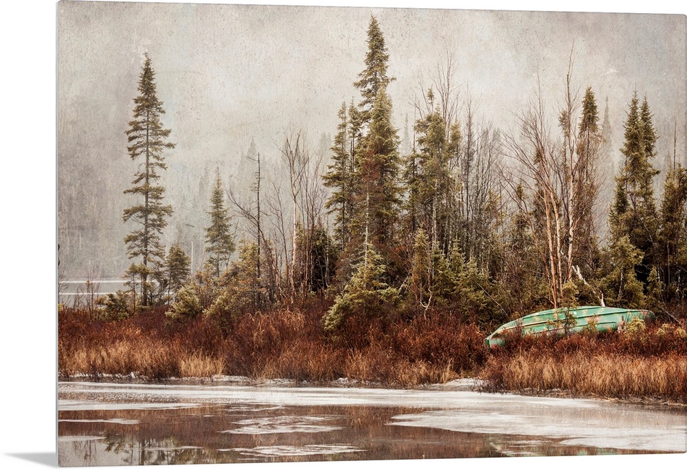 <p>Northern Autumn Landscape In Fog And Ice; Thunder Bay, Ontario, Canada</p>