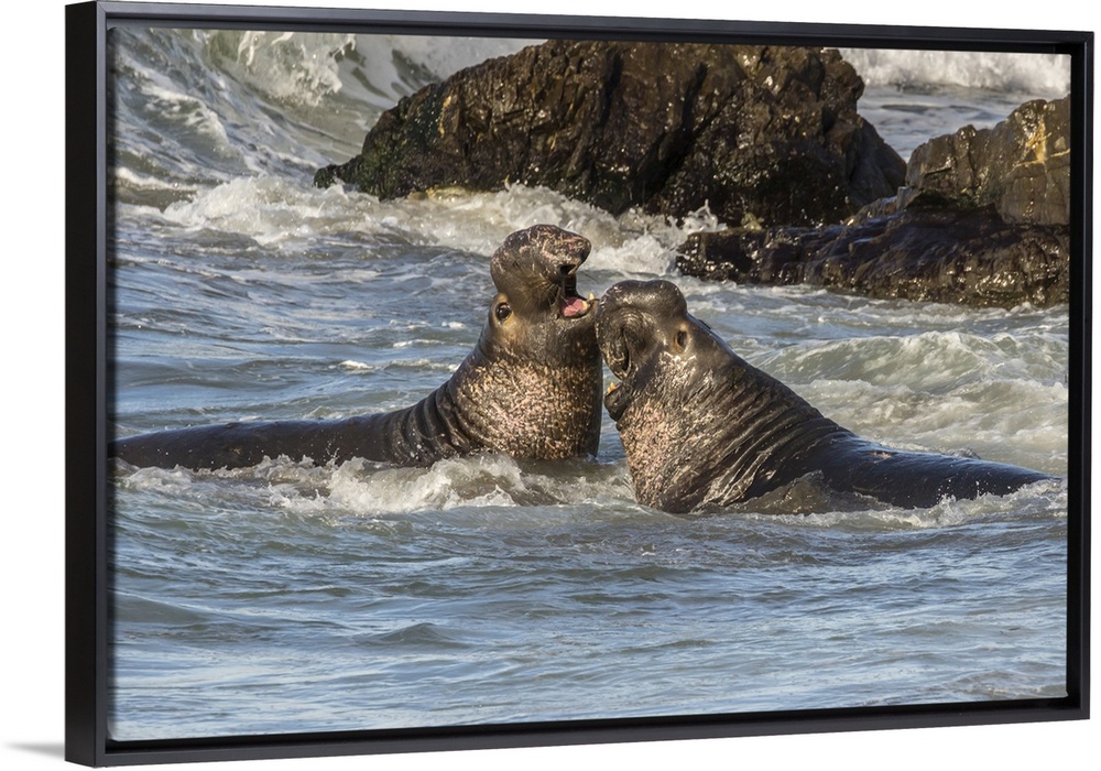 <p>USA, California, San Luis Obispo County. Northern elephant seal males fighting in surf. Credit: Cathy & Gordon Illg / Jaynes Gallery</p>