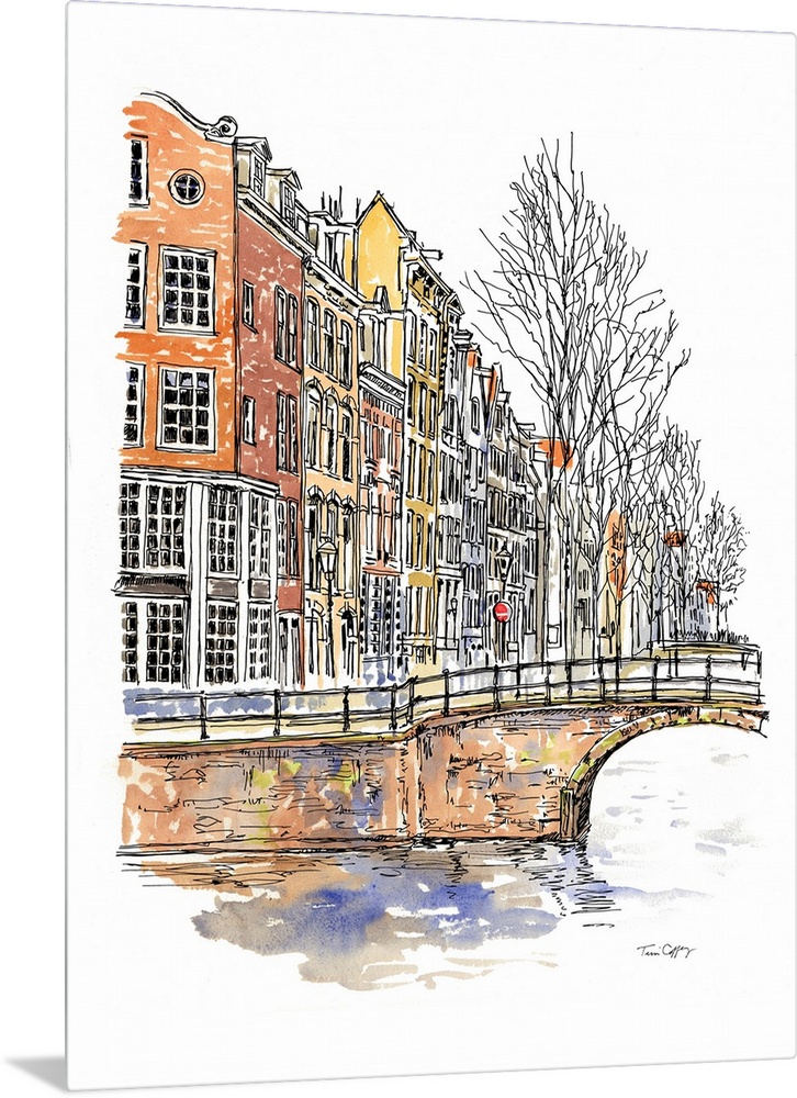 <p>A lovely pen and ink depiction of a northern European canals.</p>