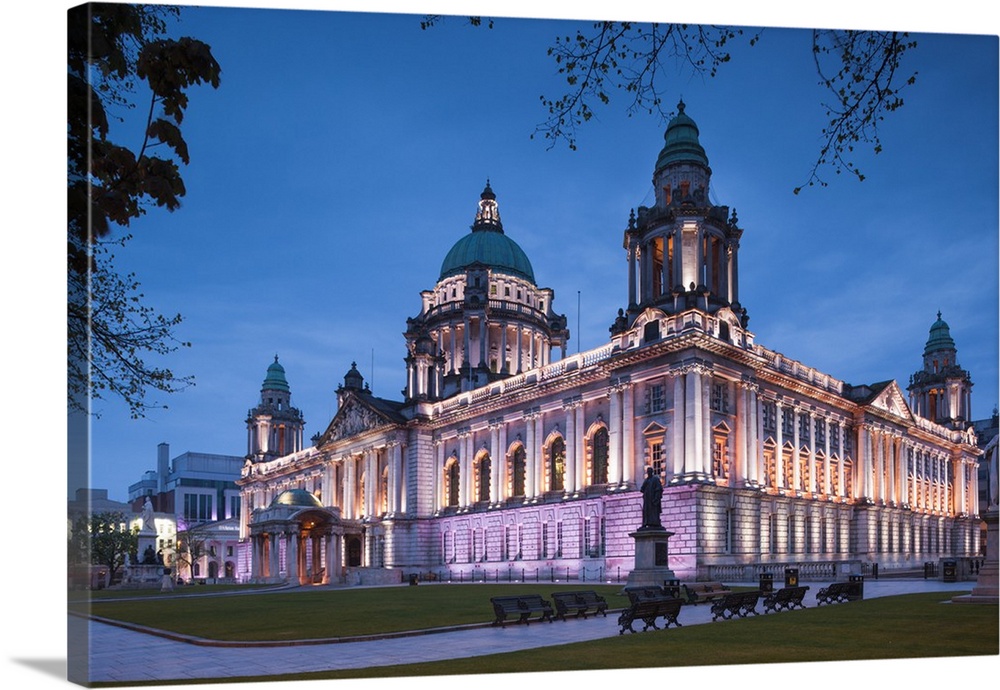 <p>UK, Northern Ireland, Belfast, Belfast City Hall, exterior, dusk.</p>