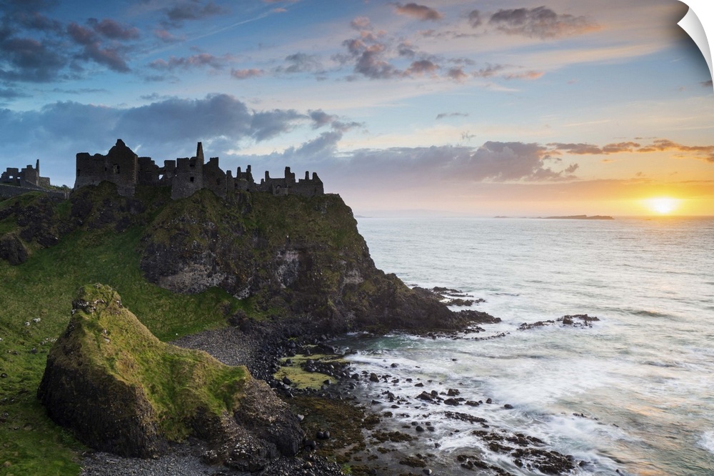 <p>United Kingdom, Northern Ireland, County Antrim, Bushmills. The ruins of the 13th century Dunluce Castle.</p>