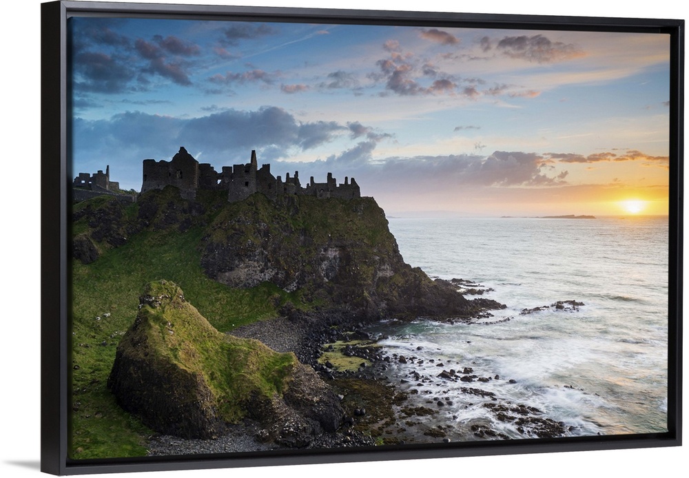 <p>United Kingdom, Northern Ireland, County Antrim, Bushmills. The ruins of the 13th century Dunluce Castle.</p>