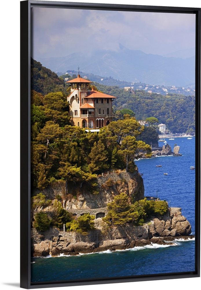 <p>Northern Italy, Italian Riviera, Liguria, Portofino. A castle overlooking the sea in portofino.</p>