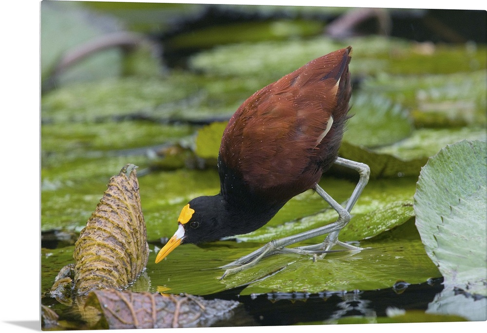 <p>northern jacana Jacana spinosa, feeding, bird, costa rica</p>