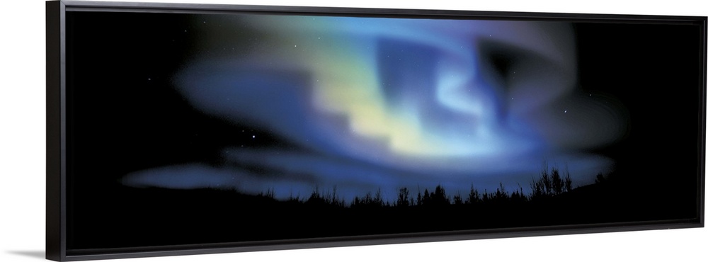 <p>This large panoramic picture is taken of the northern lights with the sky and land below blacked out.</p>