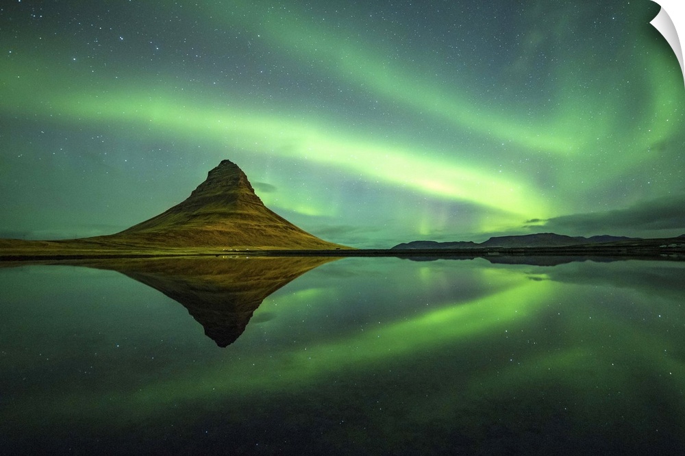 <p>Northern lights above Kirkjufell Mountain, Snaefellsnes peninsula, Western Iceland, Europe.</p>