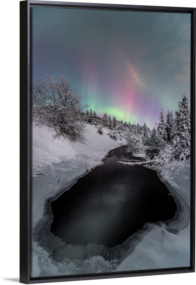 <p>Northern lights, creek side view, Yukon, Canada.</p>