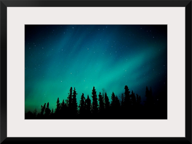 <p>Landscape photograph on a giant canvas of the Aurora Borealis over the Black Spruce forest, near Trapper Creek, during winter in Southcentral Alaska.</p>