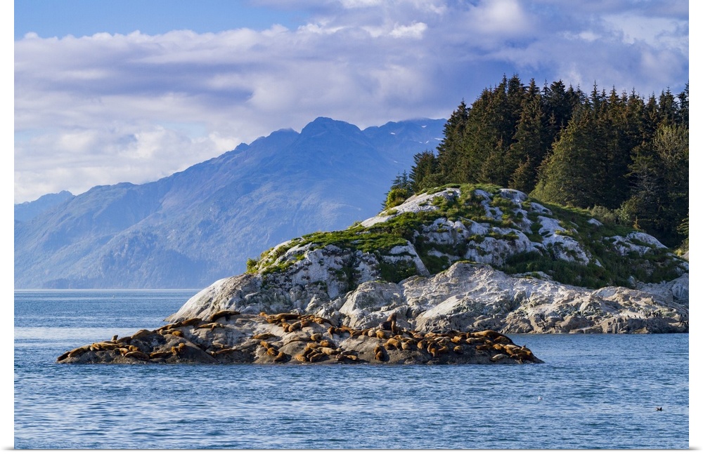 <p>Northern (Steller) sea lions, (Eumetopias jubatus), hauled out on South Marble Island, Glacier Bay National Park, Alaska, United States of America</p>