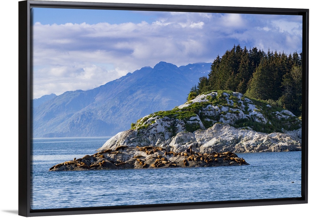 <p>Northern (Steller) sea lions, (Eumetopias jubatus), hauled out on South Marble Island, Glacier Bay National Park, Alaska, United States of America</p>