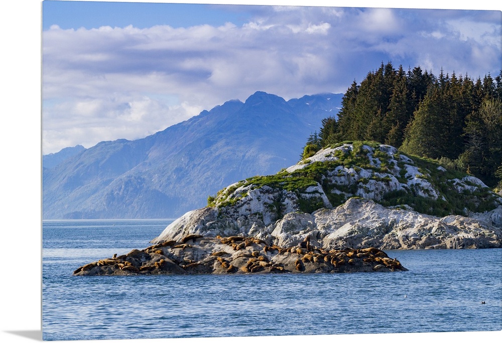 <p>Northern (Steller) sea lions, (Eumetopias jubatus), hauled out on South Marble Island, Glacier Bay National Park, Alaska, United States of America</p>