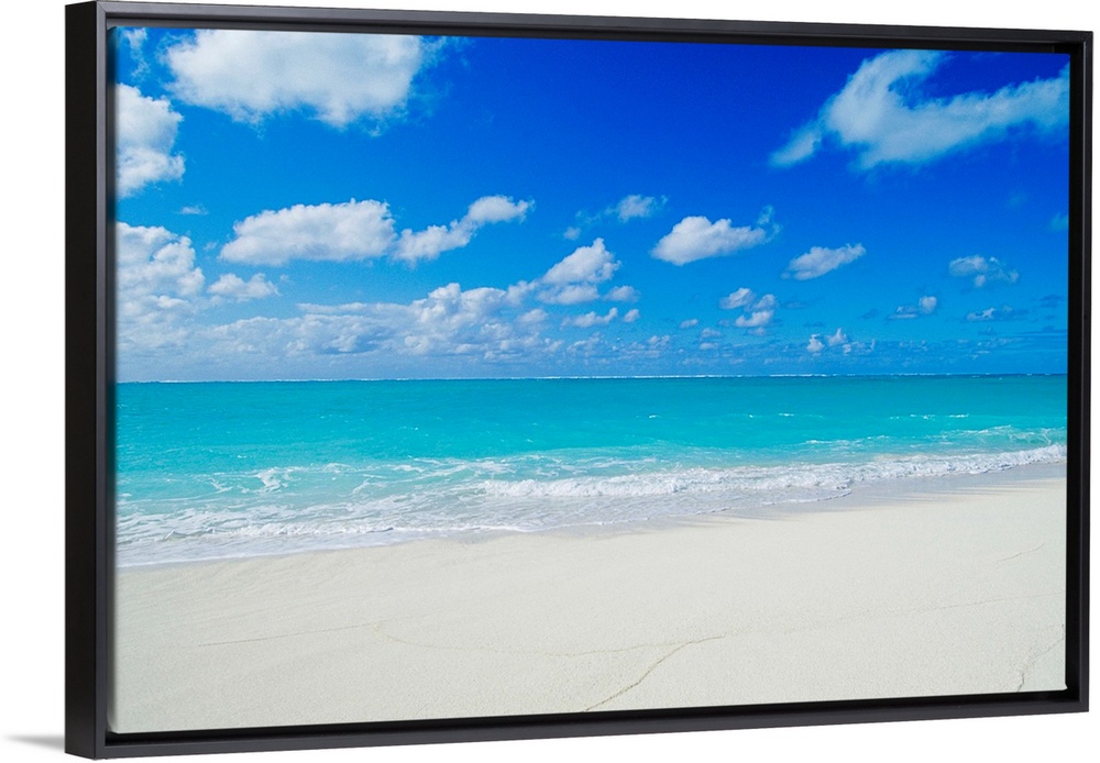 <p>Photograph of white sandy beach and crystal clear blue waters on a calm, clear day in Hawaii.</p>
