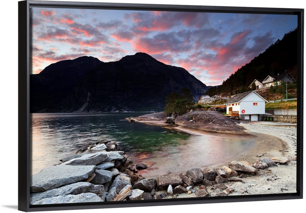<p>Norway, Hordaland, Eidfjord, Scandinavia, Sunset over the famous fjord.</p>