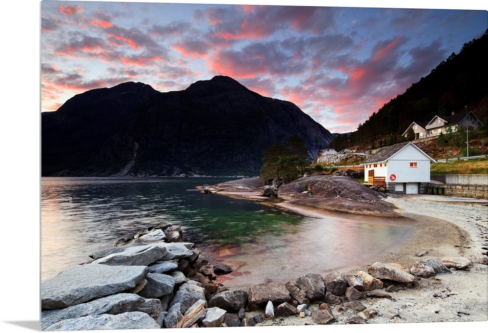 <p>Norway, Hordaland, Eidfjord, Scandinavia, Sunset over the famous fjord.</p>