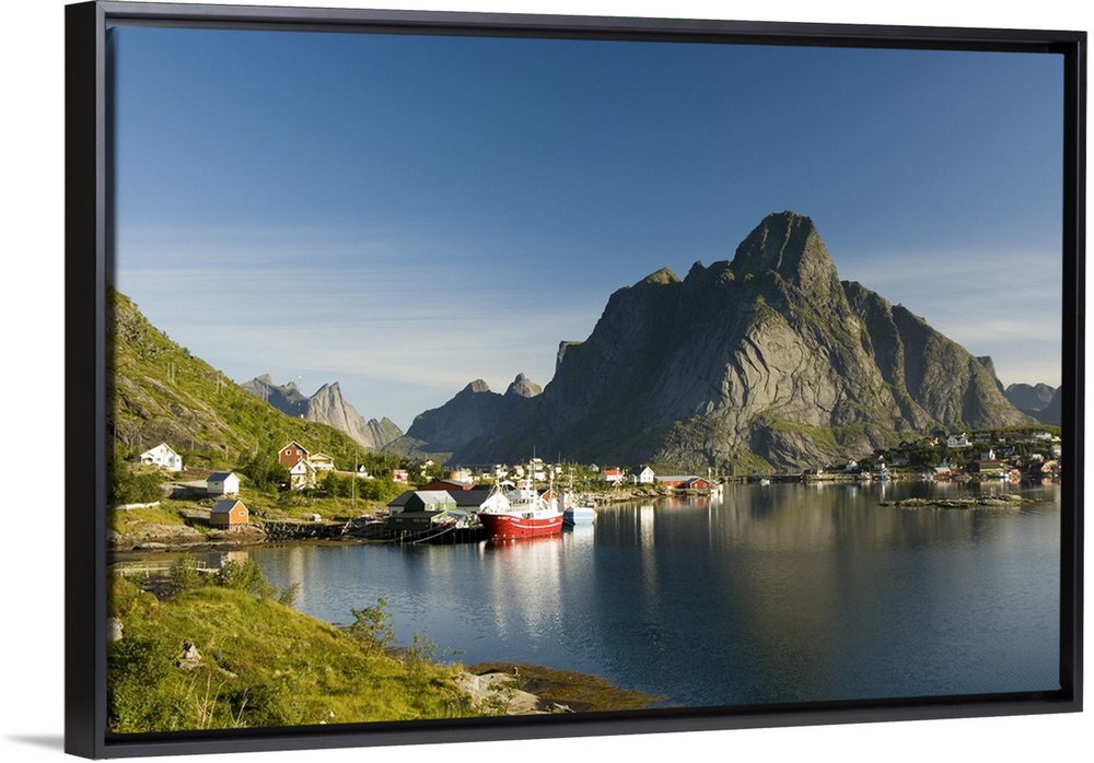 <p>Europe, Norway, Lofoten. The community of Reine below the glacially sculped peak Olstinden.</p>
