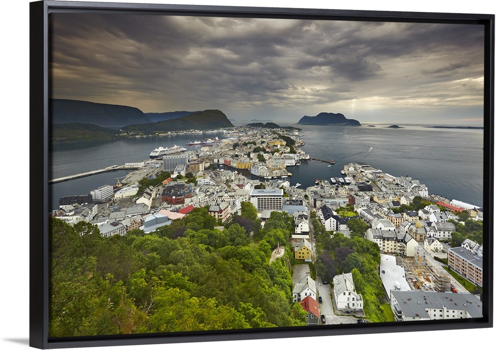 <p>Norway, More og Romsdal, Scandinavia, Alesund, View from Aksla mountain towards old town and harbor, Alesund.</p>