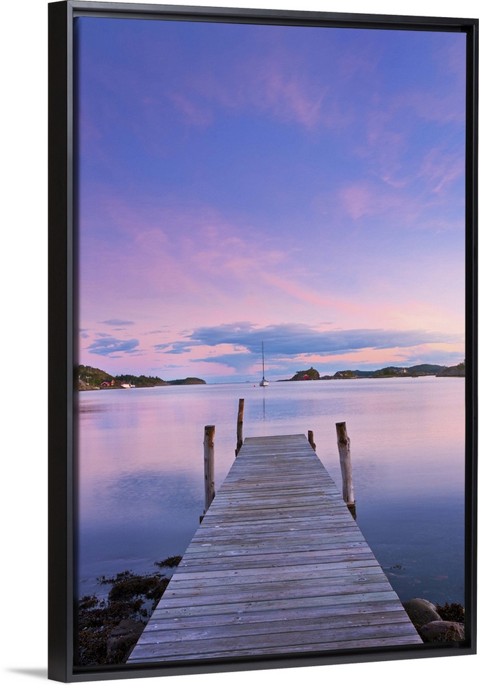 <p>Norway, Oslo, Oslo Fjord, jetty over lake at dusk</p>