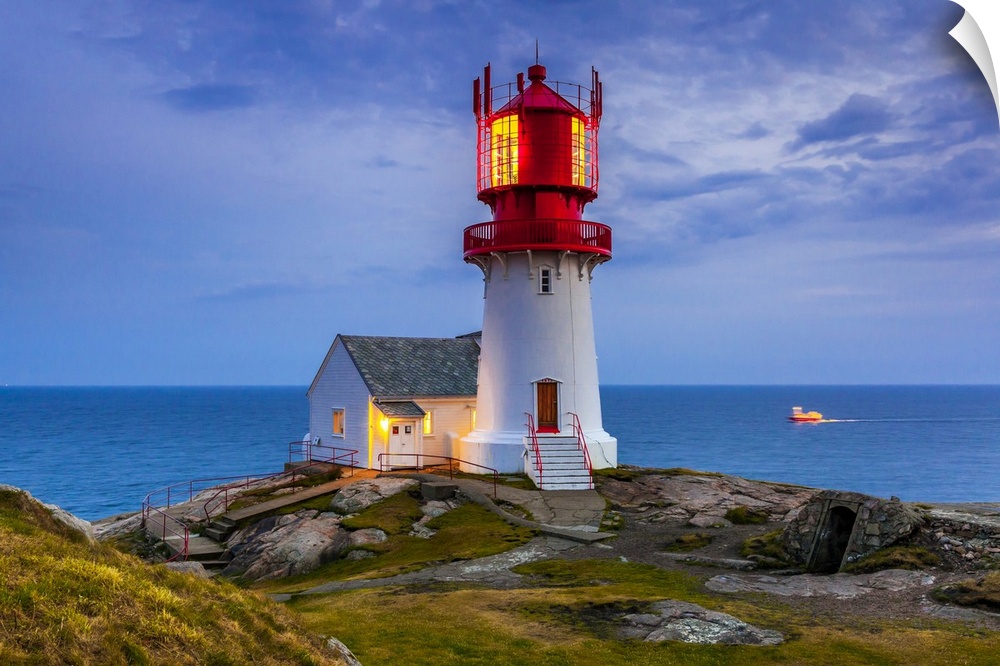<p>Norway, Vest-Agder, Scandinavia, Lindesnes, Lindesnes Fyr Lighthouse at sunset</p>