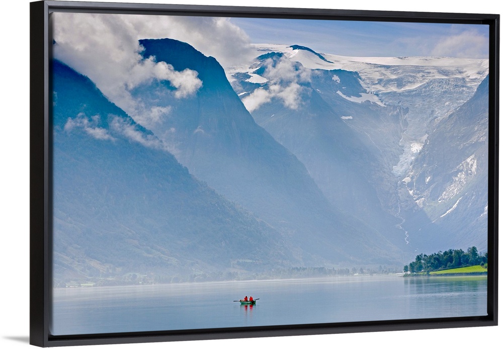 <p>Norway, Western Fjords, Nordfjord, people in rowing boat</p>