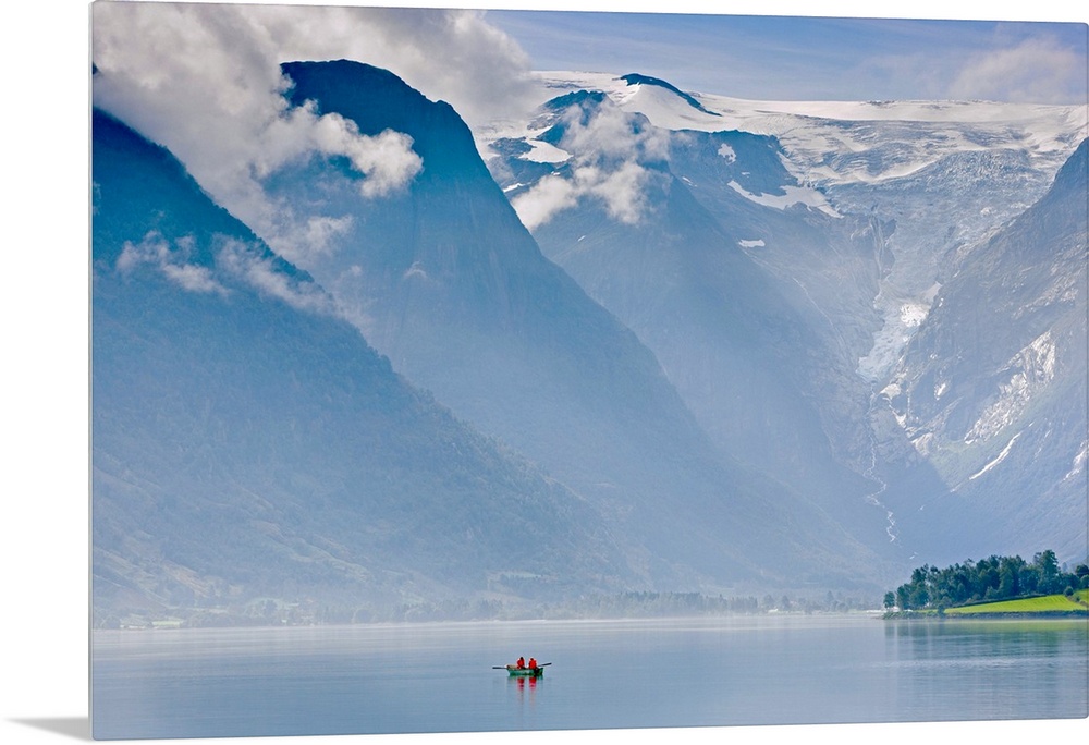 <p>Norway, Western Fjords, Nordfjord, people in rowing boat</p>