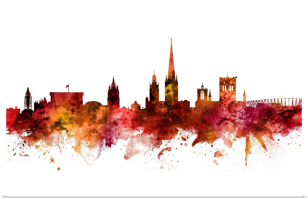 <p>Watercolor art print of the skyline of Norwich, Norfolk, England, United Kingdom.</p>